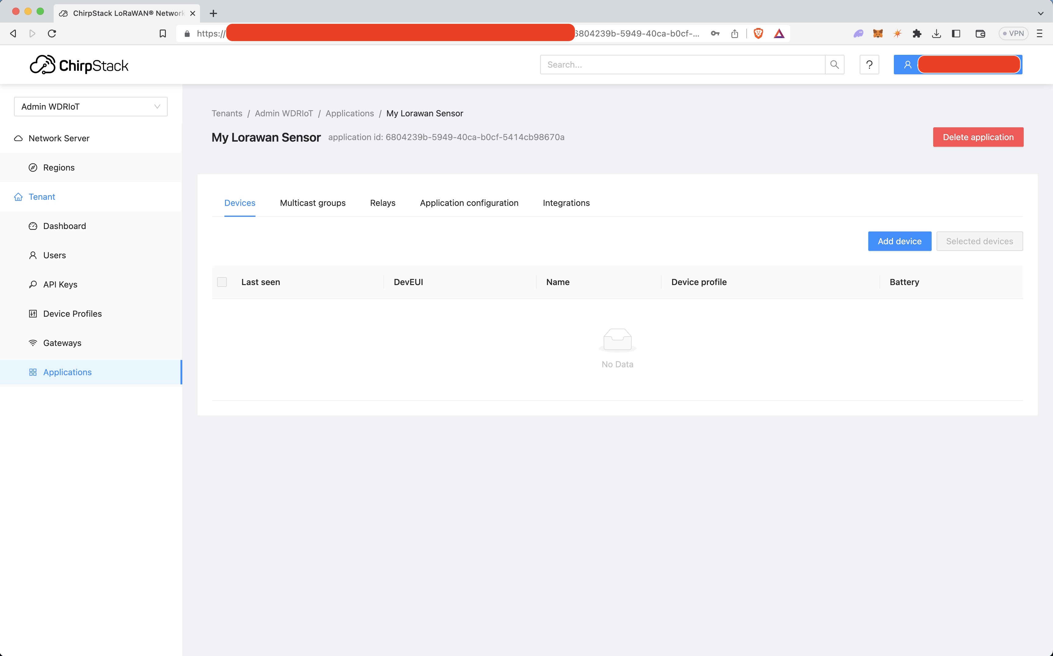 Select your Application and click Add Device.