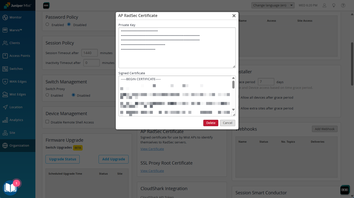 - Under RadSec Certificates, click the Add a RadSec Certificate link