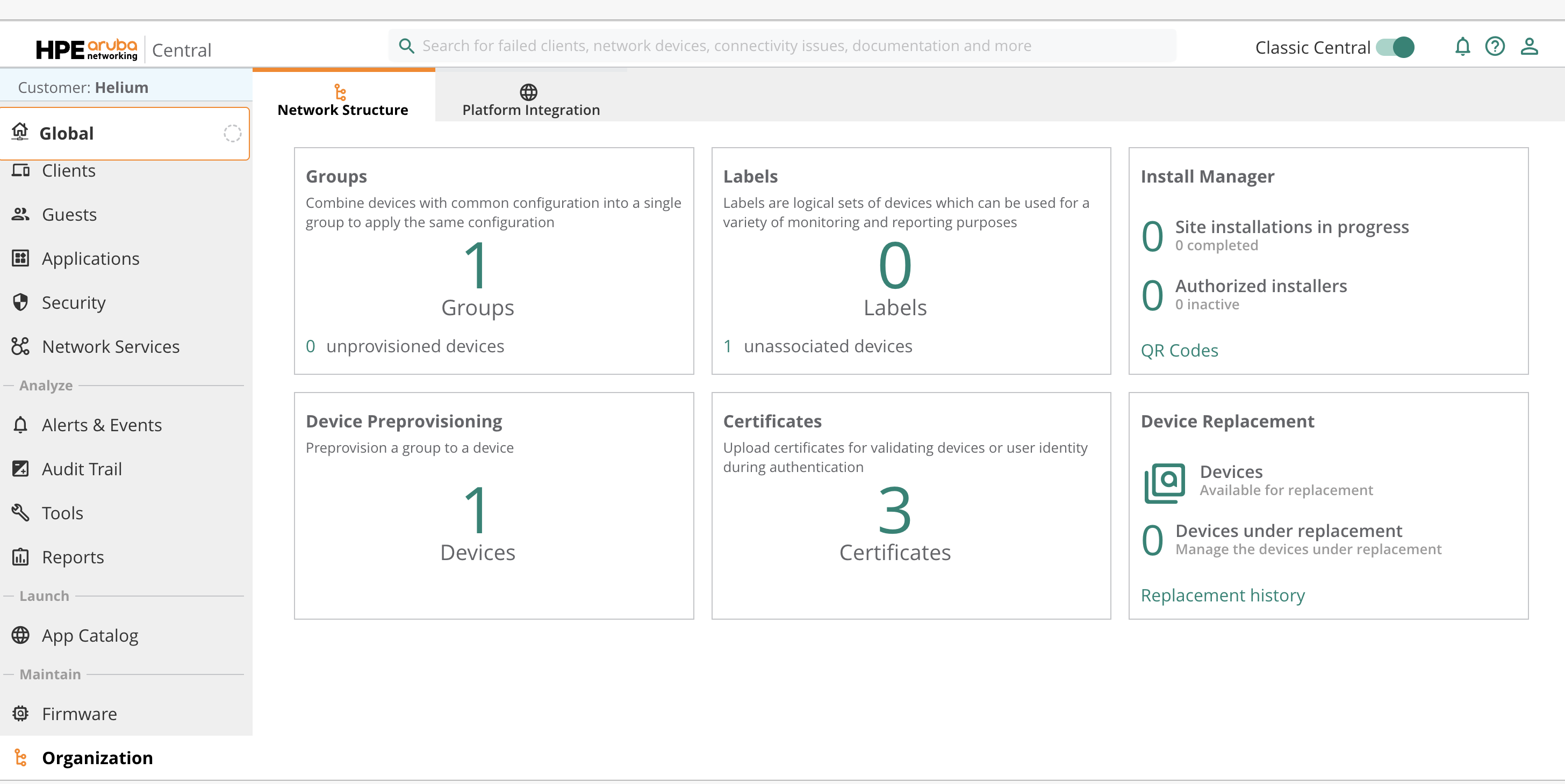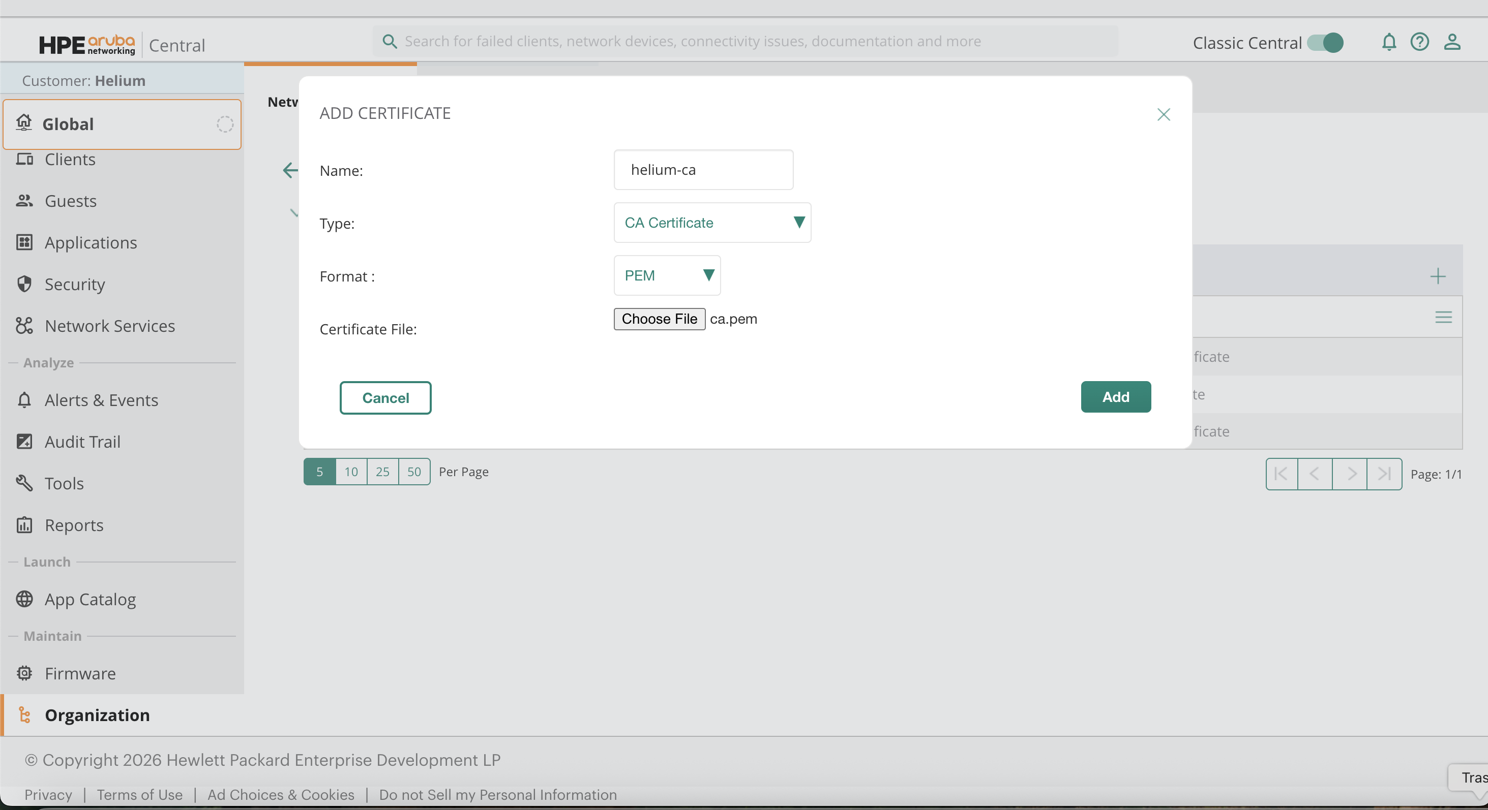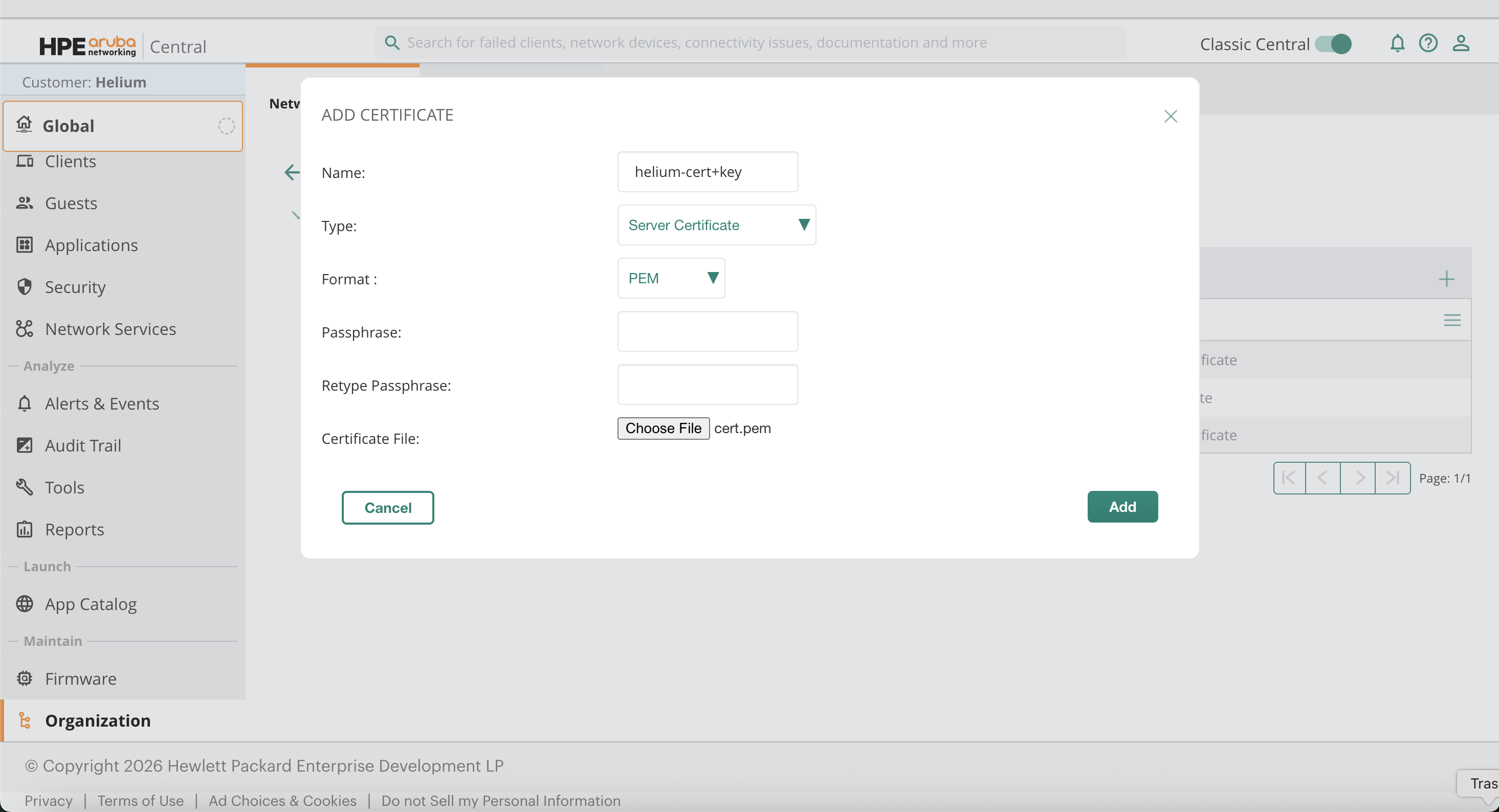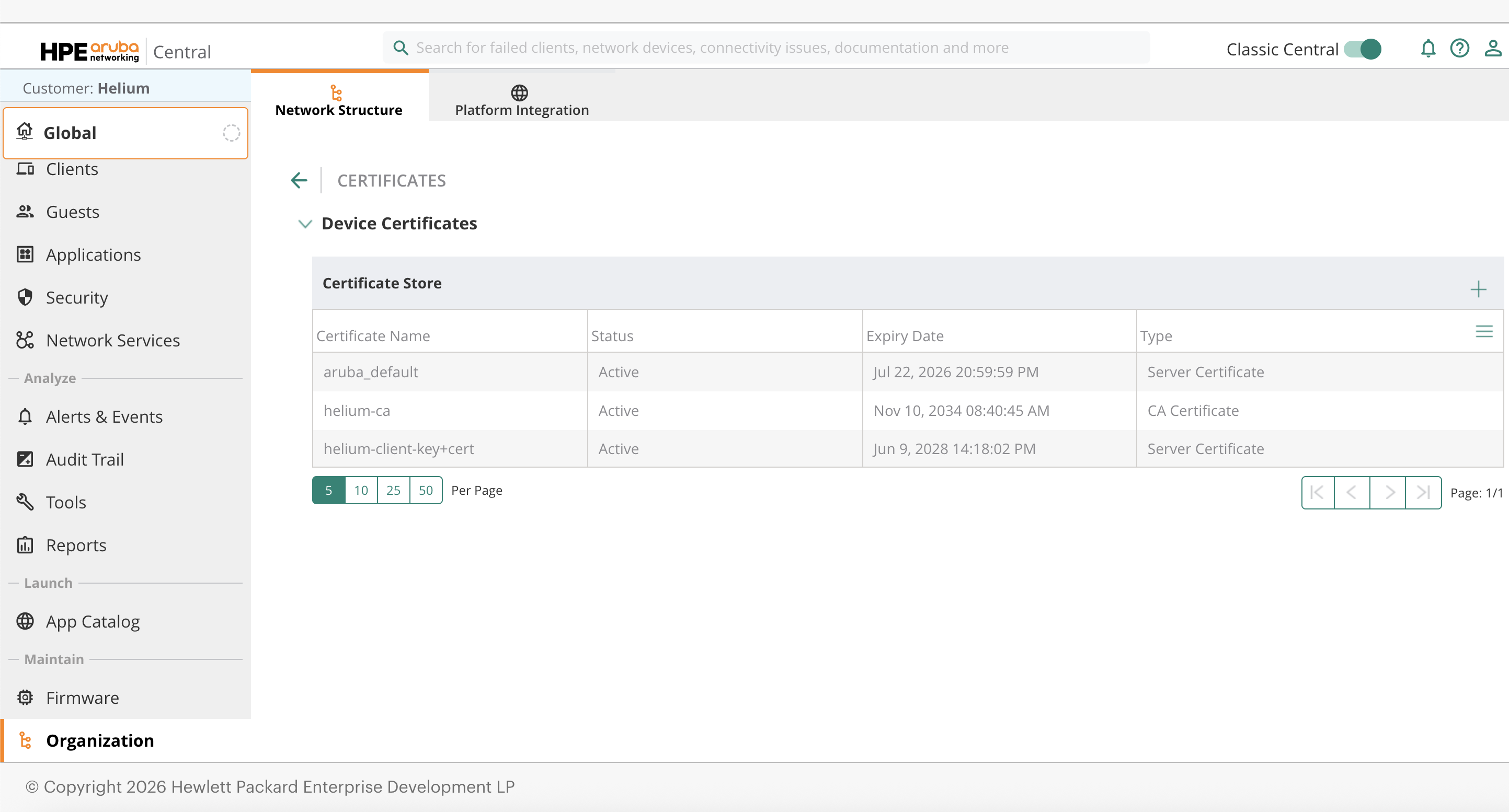 Global → Organization → Network Structure → Certificates