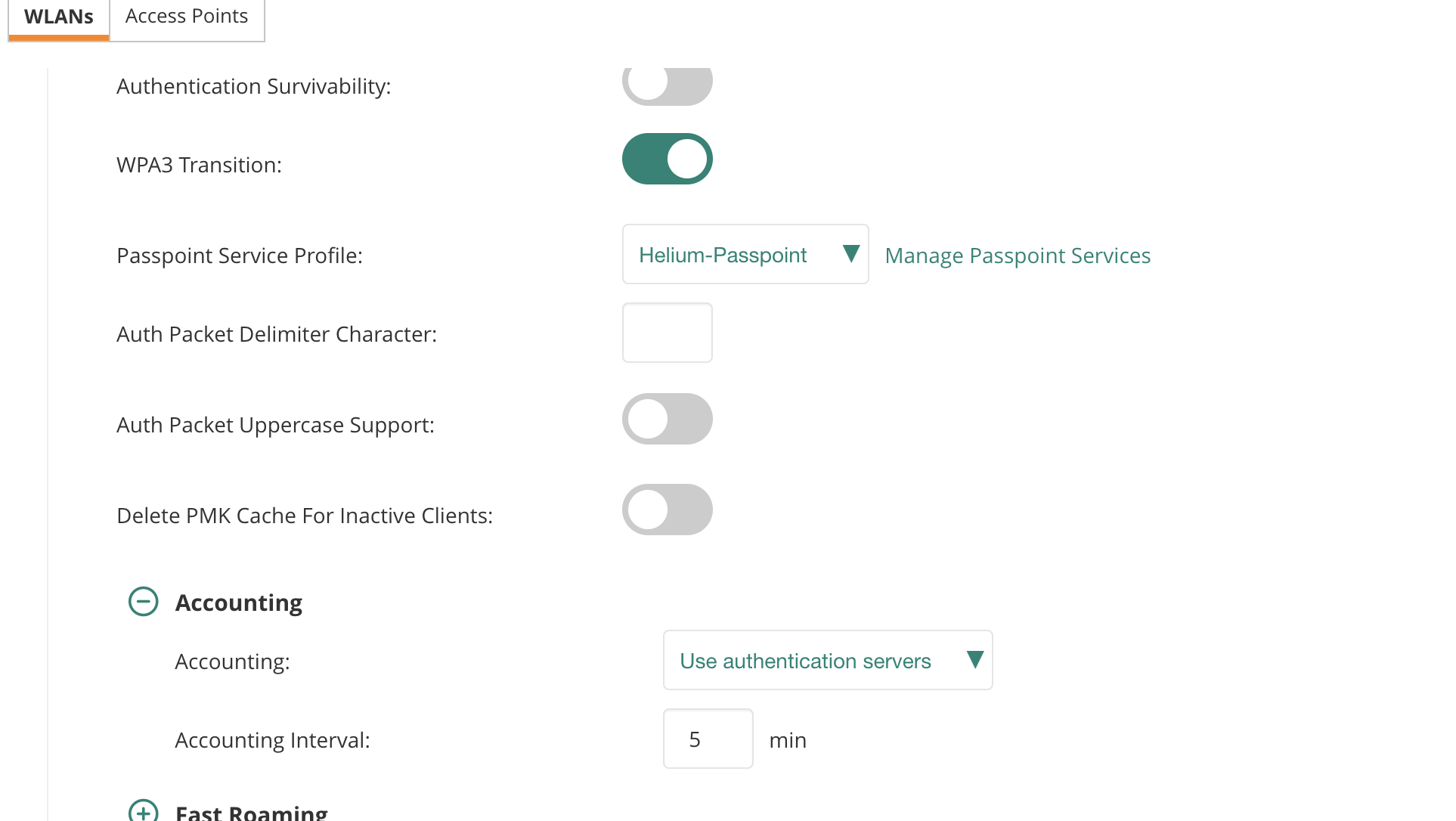 Note: Ensure you've selected your AP first or the WLAN options won't show.
