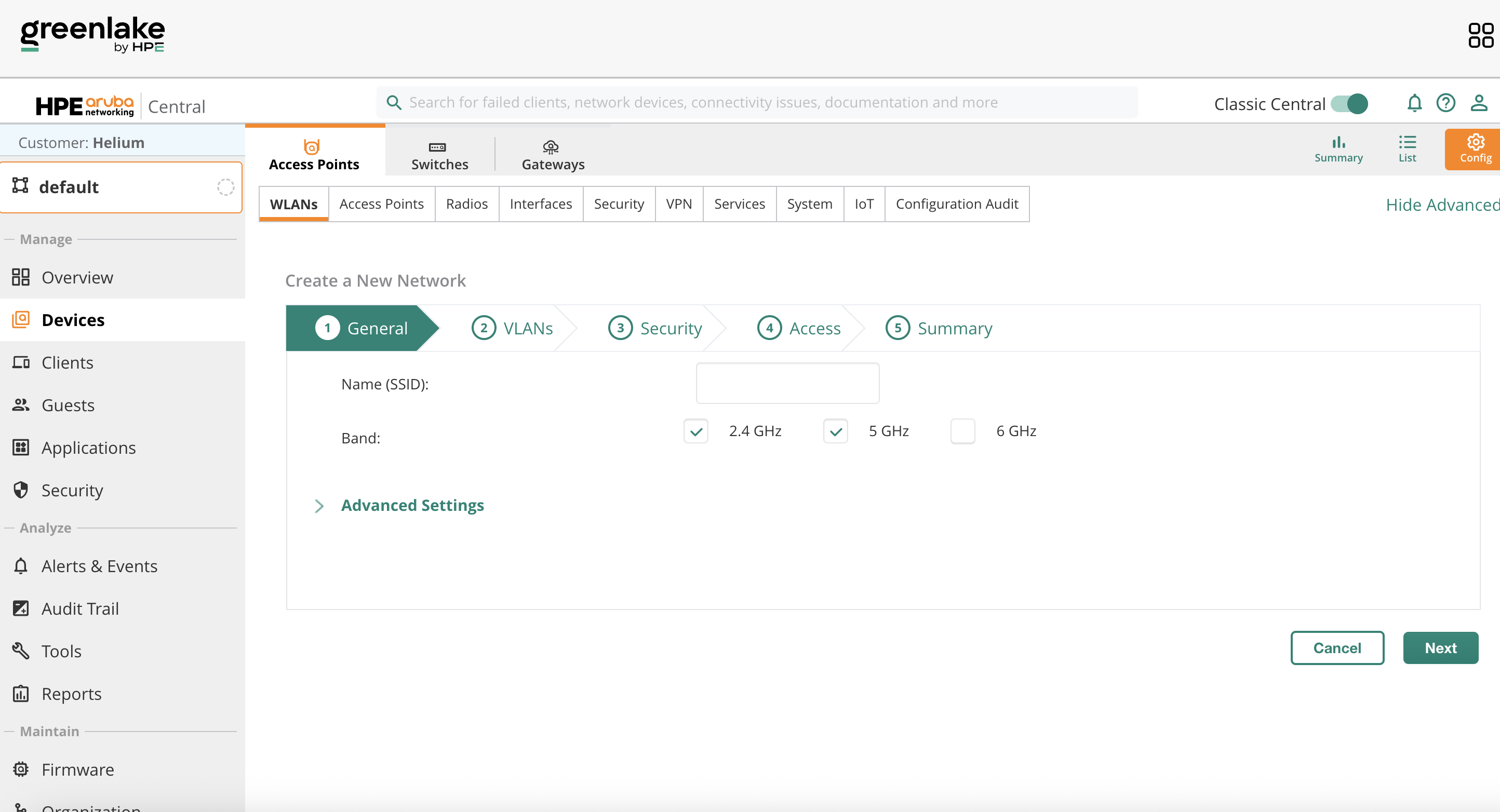 If your Aruba dashboard shows a "Classic Central" toggle, enable it.