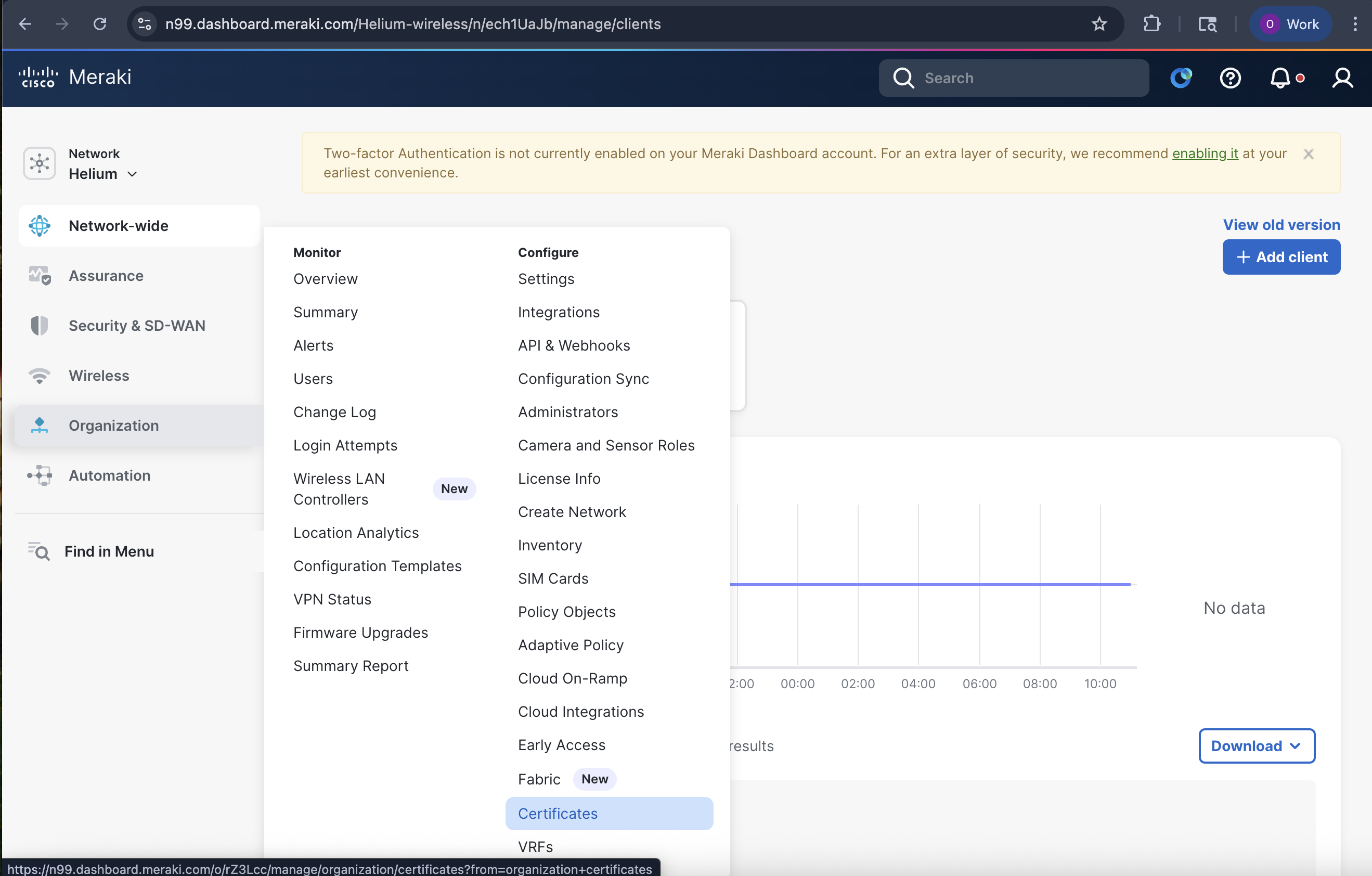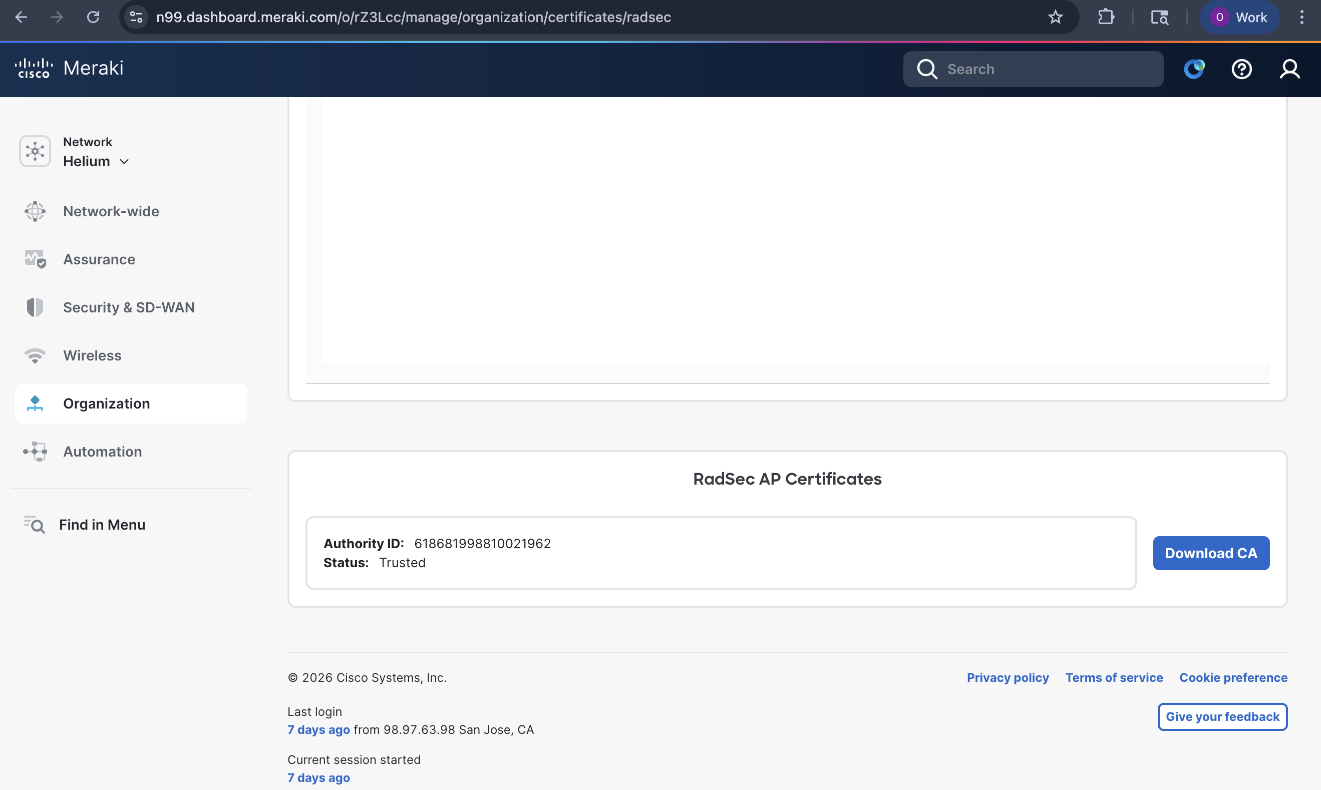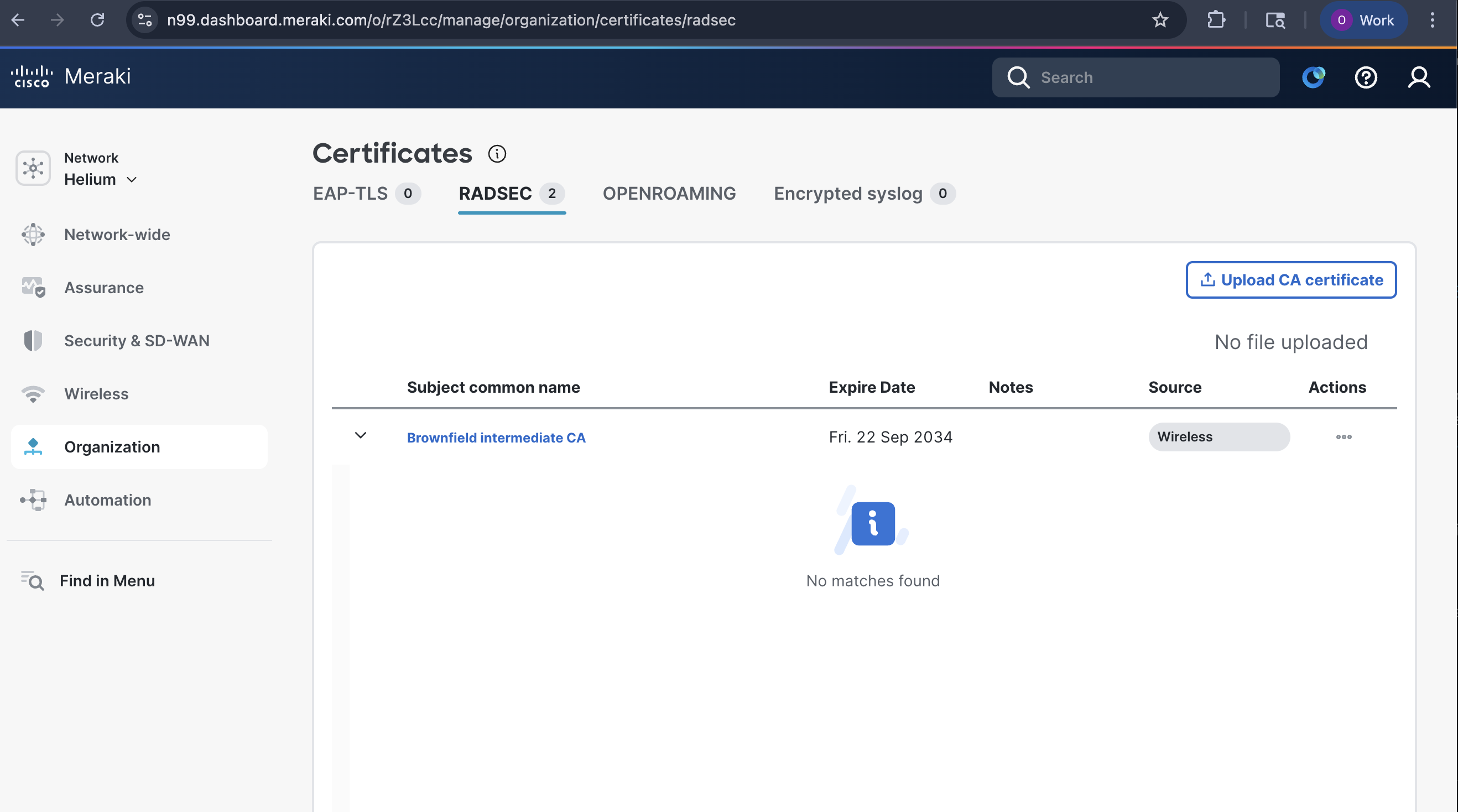 1. Import Helium CA certificate and export Meraki CA certificate to Helium team